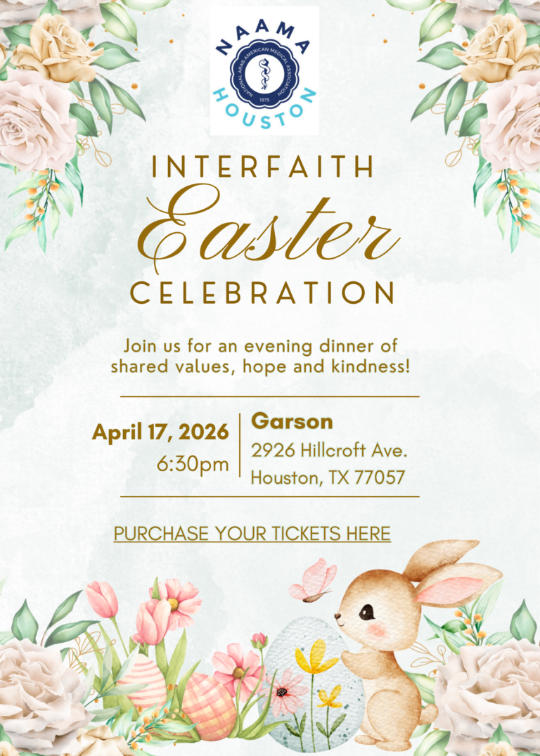 NAAMA is proud to be an all inclusive association that acts as the voice of all Arab American healthcare professionals and addresses their professional and cultural needs. Through educational, philanthropic and service activities, NAAMA promotes the professional development and cultural identity of healthcare professionals with roots or affinity to the Arab World. Houston Chapter membership is unified with our national office.